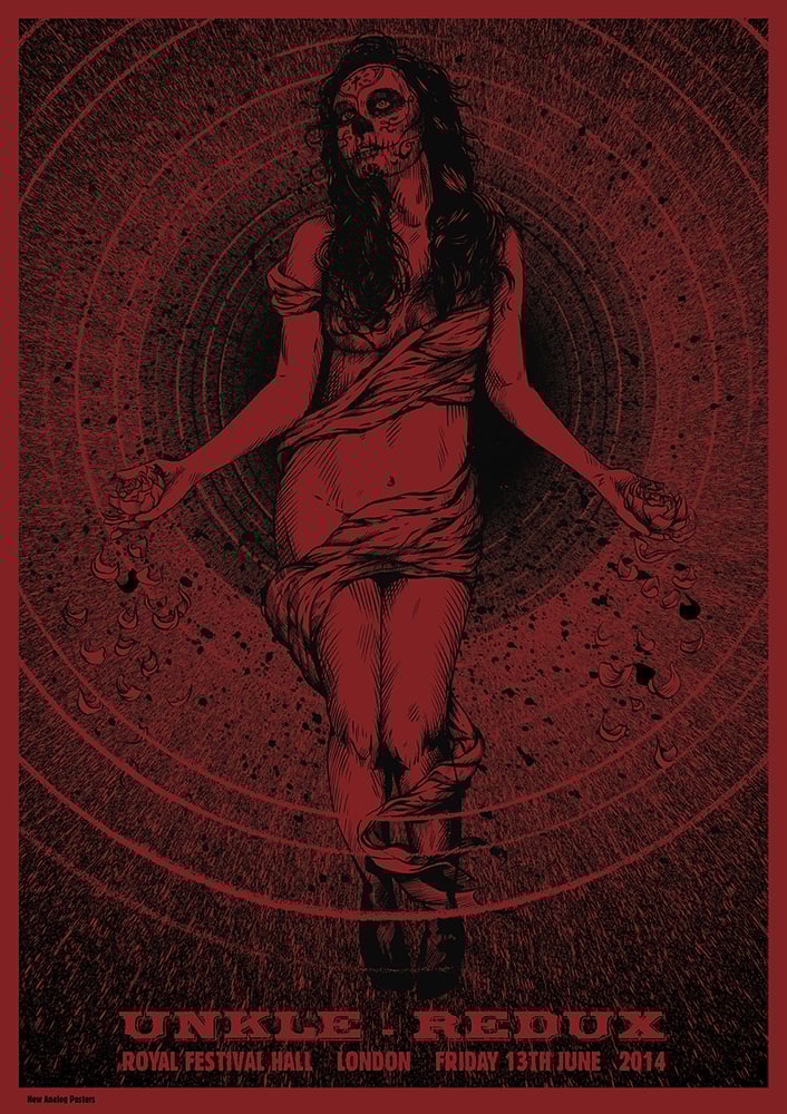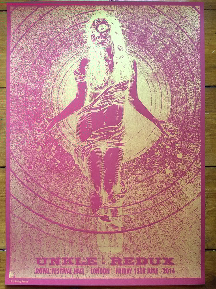 Limited edition gig poster for UNKLE's performance at The Royal Festival Hall, London, June 13th 2014.